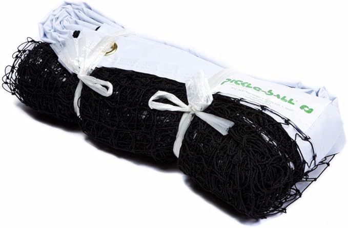 - HEAVY DUTY - **This net is intended to be tied to eye hooks | it is not a replacement for portable net systems | it does not have sleeves ** Indoor Pickleball or Badminton game net made with durable PVC Tarpulin binding 2" on the top and 1" Nylon around sides and bottom of net