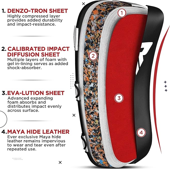 - IMPACT-ABSORBENT CURVED DESIGN– Ever wonder how trainers can stand up to those jarring blows? It’s all about the details! These striking pads feature a specially engineered curved shape combined with IMT Gel Foam Padding, which works together to evenly distribute and absorb impact. Meaning strikes land solidly without transferring the force back to the trainer’s arms. Reduce strain, and experience a more comfortable experience for fighters and trainers—so you can focus on power and precision.