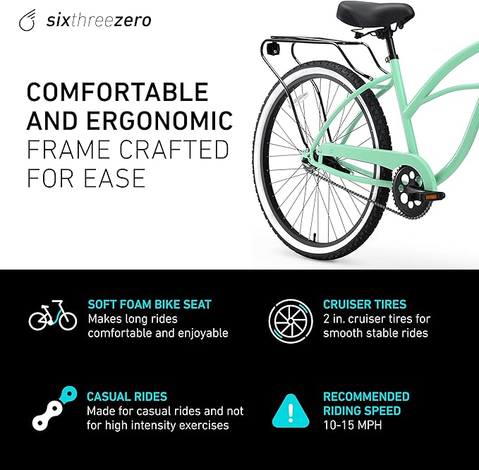 - Included Components : sixthreezero Women's Around The Block Single Speed Cruiser Bike, 17"/One Size, Mint Green