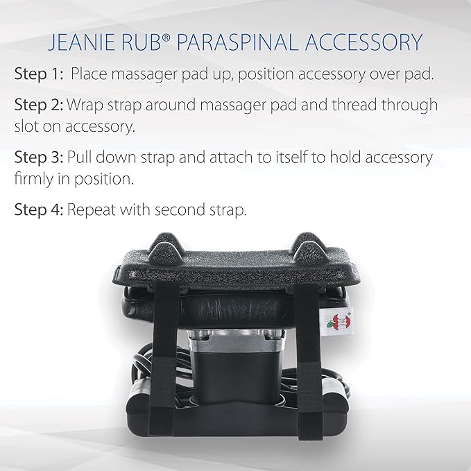 - Easily attaches to Jeanie Rub Massager with hook and loop fasteners