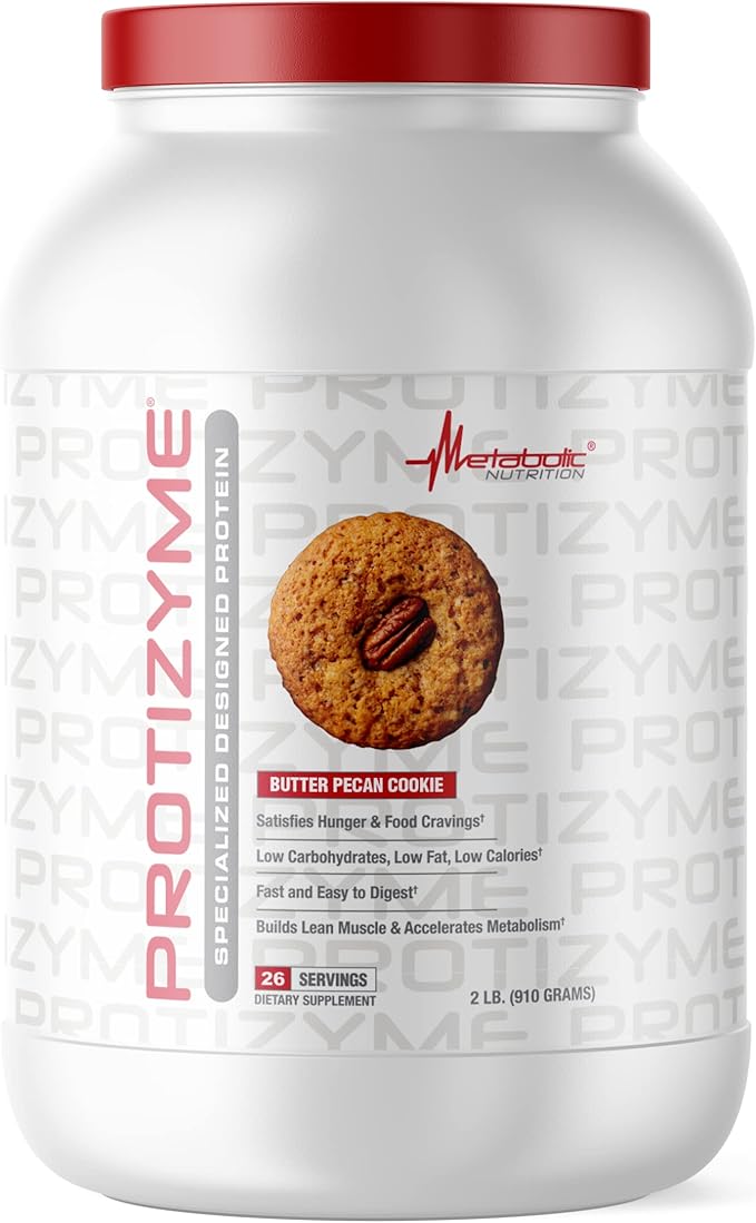 Metabolic Nutrition, Protizyme, 100% Whey Protein Powder, High Protein, Low Carb, Low Fat Whey Protein, Digestive Enzymes, 24 Essential Vitamins and Minerals, Butter Pecan Cookie, 2 Pound (26 ser)