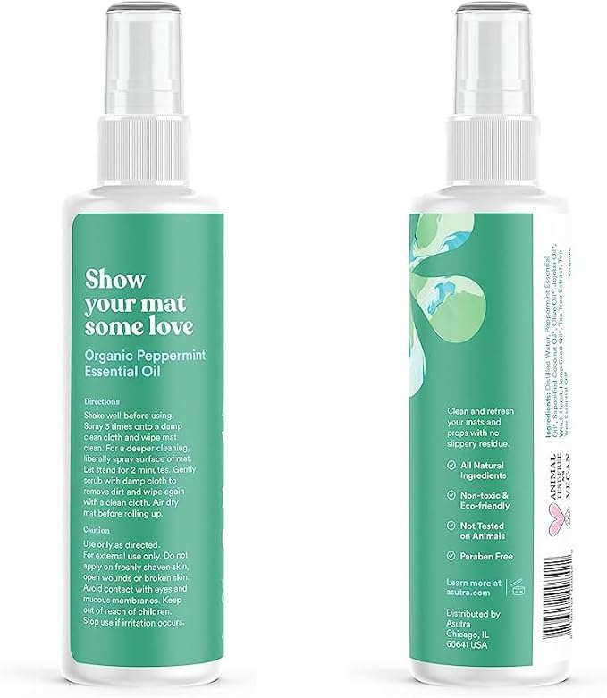 ASUTRA Yoga Mat Cleaner Spray (Energizing Peppermint), 4 fl oz - No Slippery Residue, Organic Essential Oils, Deep-Cleansing for Fitness Gear & Gym Equipment, Microfiber Towel Included