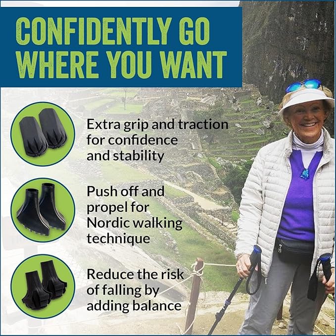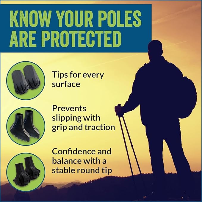 - PROTECT YOUR POLES: replacement feet protect your poles and prevent slipping with grip and traction to confidently go anywhere knowing your pole is securely planted