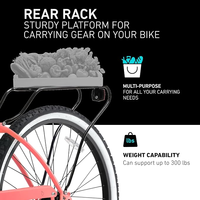 - SLEEK STYLE: These bikes for women feature a stylish, curvy frame with a comfortable foam saddle; hybrid bicycles include a rear rack for optional bike accessories such as baskets and panniers