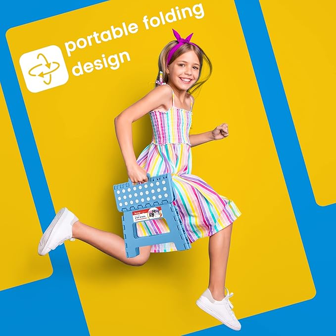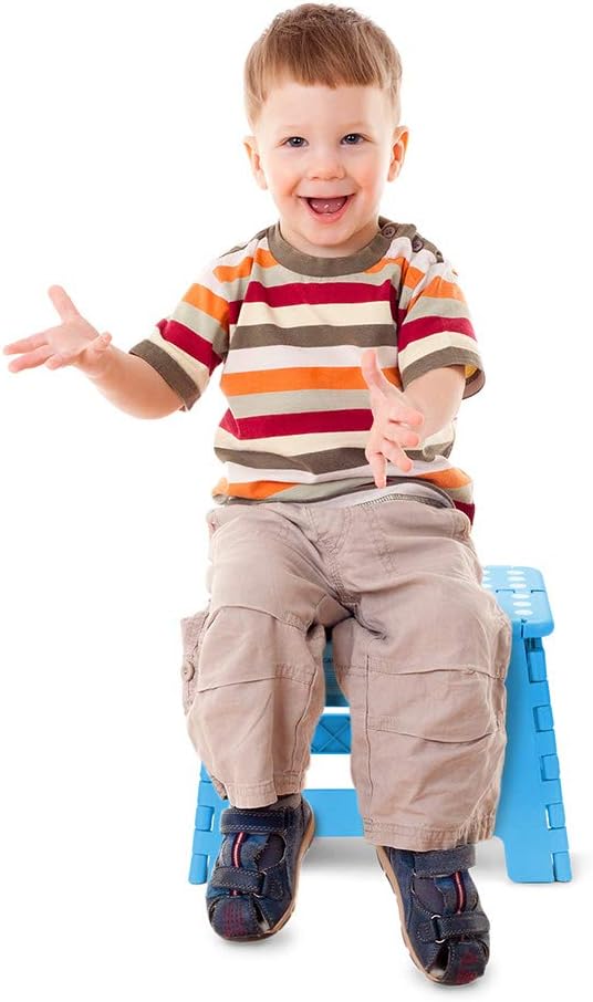 ACSTEP Folding Lightweight Plastic 9 inch Foldable Step Stool, Non Slip Folding Stools for Kitchen Bathroom Bedroom (Blue)
