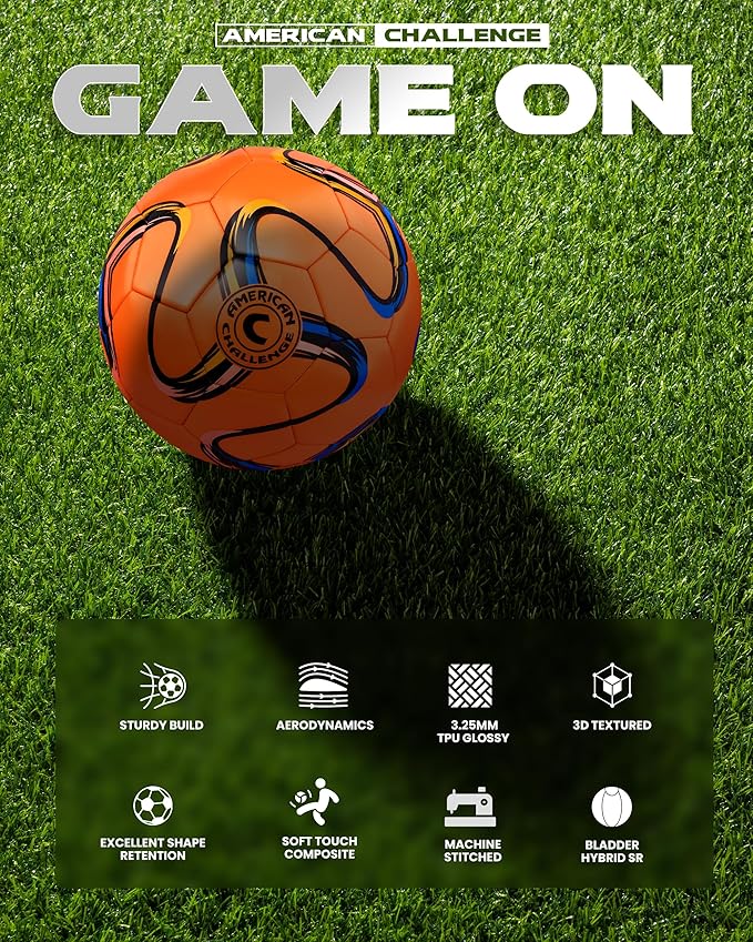 American Challenge Brasilia Soccer Ball – Soccer Ball Size 5, 4, 3 & 2 – for Youth & Adults – Ideal for Practice, Training & Grass Fields