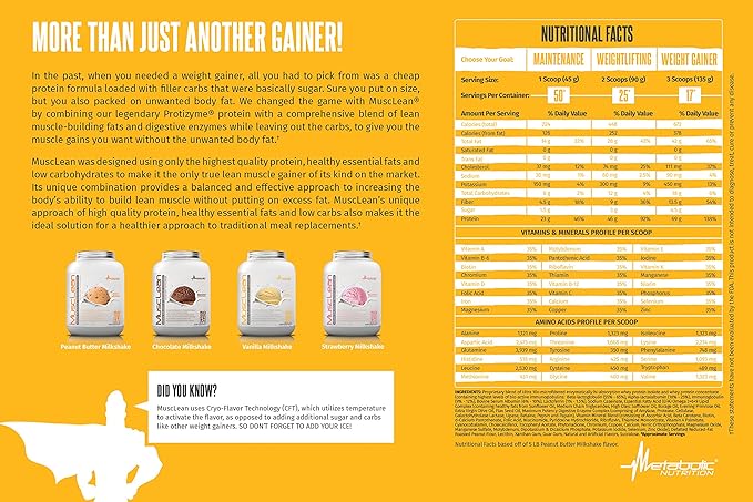 - MuscLean’s enzyme coated, high essential fatty acid protein works with your body to digest easily and absorb quickly. Fortified with 24 vitamins and minerals, providing a well-balanced high protein keto, low carb, low sugar meal that you decide the protein and calorie level to fit your desired goals.