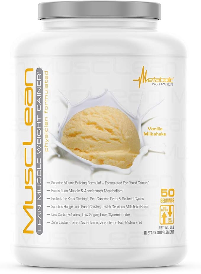 Metabolic Nutrition - Musclean - Milkshake, Whey High Protein Meal Replacement, Maintenance Nutrition, Low Carb, Keto Diet, Digestive Enzymes, Vanilla, 5 Pound (50 ser)
