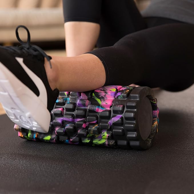 - Medium density muscle roller is comfortable to use - making it easy for beginners , but still effective at penetrating the soft tissue layer of tired muscles . Soft enough to use while in pain from lower back injury , sciatica or plantar fasciitis .