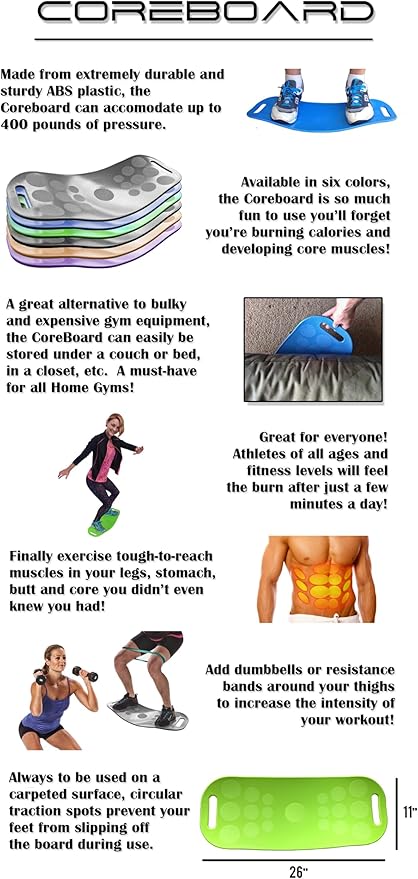 - EXTREMELY DURABLE - Made from reinforced ABS plastic, the CoreBoard can support up to 400 lbs. of pressure