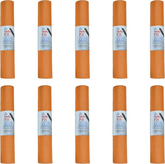 Hello Fit 10-Pack Yoga Mat, 68" x 24" Non Slip Exercise Mat, 4mm Thick Gym Mat for Fitness and Stretching, Bulk Non Toxic Yoga Mats for Schools and Studios