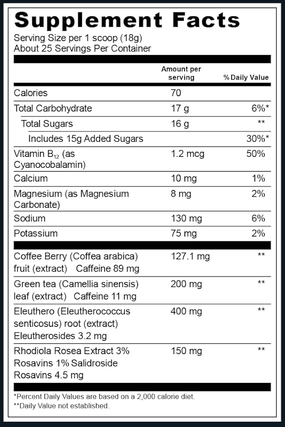- HELPS YOU STAY ALERT with 100mg of caffeine from natural sources like coffee fruit and green tea to help you focus, so you'll be ready for your workout, cycling, hiking or running.