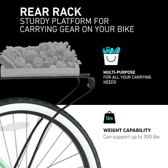 - SLEEK STYLE: These bikes for women feature a stylish, curvy frame with a comfortable foam saddle; hybrid bicycles include a rear rack for optional bike accessories such as baskets and panniers