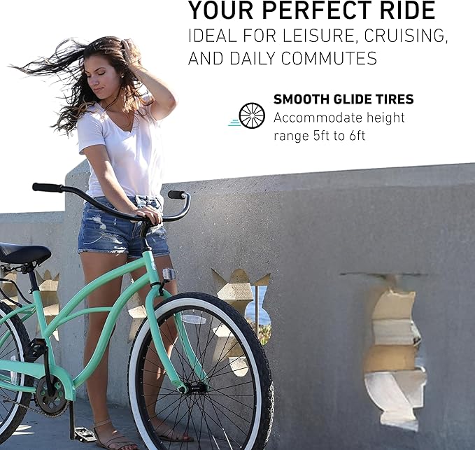 - BEACH CRUISER BIKE FOR WOMEN: Versatile women's touring hybrid commuter bicycle with a sleek 15 inch steel frame; perfect for cruise, leisure, commute, and casual to up-tempo rides across multiple types of terrain; can hold riders up to 300 lbs, fits riders from 4 feet, 4 inches to 5 feet tall