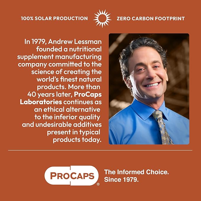 - Ethical & eco-friendly. zero carbon footprint - Uniquely committed to your health and the health of the planet, ProCaps’ facilities are 100% Solar Powered with a Zero Carbon Footprint and an LEED Gold green building status. All ProCaps bottles are made from 100% recyclable post-consumer resin. Plus, Andrew Lessman and ProCaps are the largest donor of prenatal vitamins in the world (over 2 billion capsules donated to date). ProCaps, the Informed Choice for Nutritional Supplements.