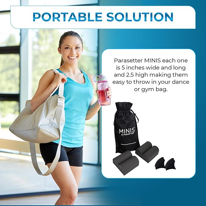 - Portable Solution: Parasetter MINIS weigh 3.2 ounces, each one is 5 inches wide and long and 2.5 high making them easy to throw in your dance or gym bag - a foot massage tool you can take anywhere.