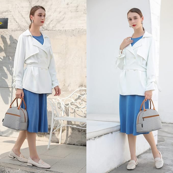 FlowFly Insulated Lunch Cooler Bag - Tote Bag Organizer for Women/Men, White&Black Stripe