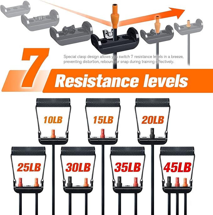 - 【Different Color Resistance Bands】Purple (20 lbs), Red (15 lbs), Orange (10 lbs). All exercise bands are 48" in length, and can be used alone or stacked in any combination up to 45 lbs for extra challenges. Perfect for burning fat and toning your arms, shoulders, chest, glutes, legs, etc