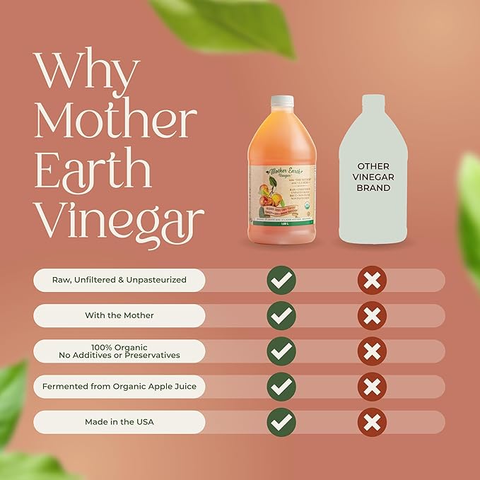 - PREMIUM QUALITY - In every bottle of Mother Earth Vinegar, you’ll find the same delicious honey-golden apple cider vinegar, with a taste that’s smoother and more rounded out than other vinegars.