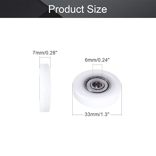 MroMax Roller Idler Bearing Pulley-6 x 33 x 7mm Sliding Conveyor Nylon Wheel with 626ZZ Bearing for Furniture, Hardware Accessories and Mobile Door White 4Pcs