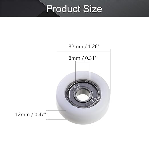 MroMax Roller Idler Bearing Pulley-8 x 32 x 12mm Sliding Conveyor Nylon Wheel with 608Z Bearing for Furniture, Hardware Accessories and Mobile Door White 4Pcs
