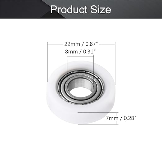 MroMax Roller Idler Bearing Pulley-8 x 22 x 7mm Sliding Conveyor Nylon Wheel with 688ZZ Bearing for Furniture, Hardware Accessories and Mobile Door White 4Pcs