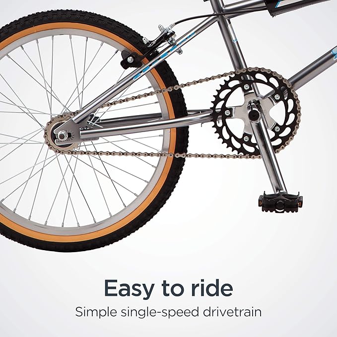 - Single speed drivetrain and rear caliper brake provide easy, low maintenance riding