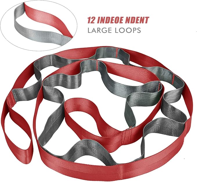 - PORTABLE AND EASY TO USE: Yoga straps for stretching with 12 loops. 8 foot long and 1.57 inches wide. Stretching straps are easy to work, so whether you're a beginner or an experienced fitness enthusiast, stretching strap with loops is a very good option for you.
