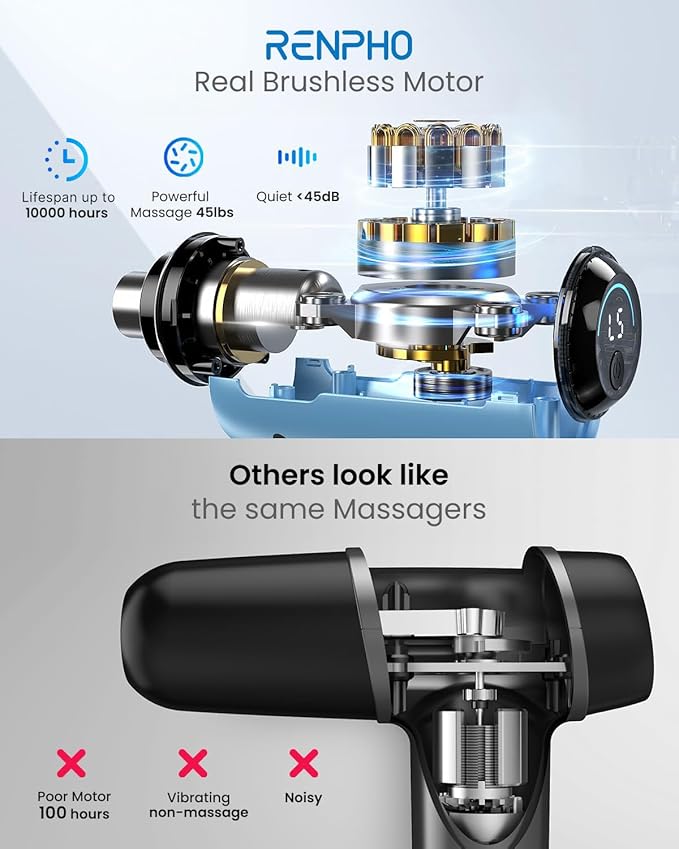 - Powerful Muscle Massage Gun: This deep tissue massage gun features a premium metal housing and a high-torque brushless motor, providing high penetration and an exquisite sports massage experience