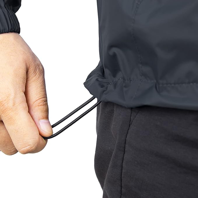 - ?�Unique Design?‘Lightweight lite rain jacket elastic cuffs prevent the rain drops to the cuffs; Adjustable drawcord hood to prevent yourself from being wet; The hem contains elastic rope for warmth and keep you dry. Suitable for casual wear, outdoor sports, outdoor work, traveling, cycling, hiking, climbing, fishing, camping, hunting.