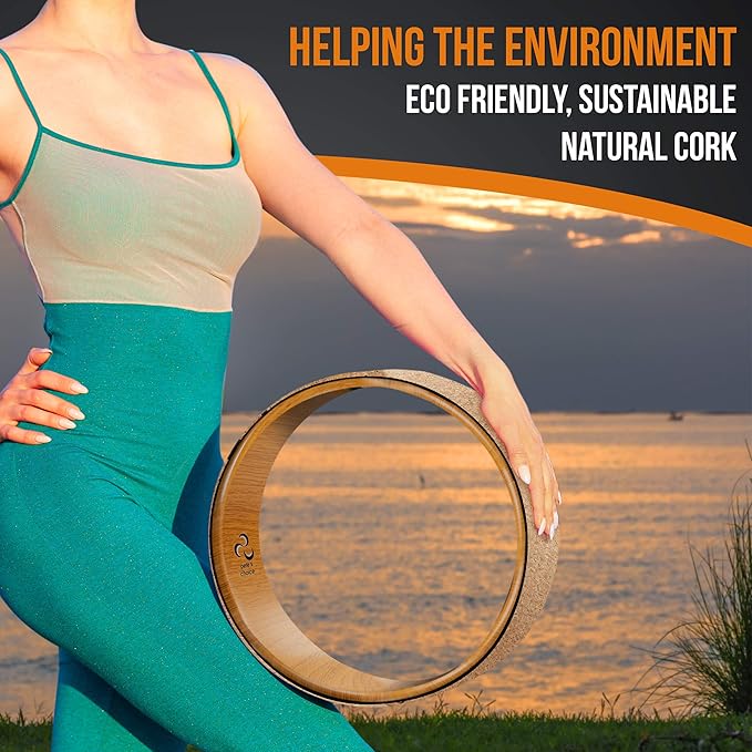 Deluxe Cork Yoga Wheel Set - Cork Wheel + 2 Blocks + Strap + Exercise Guide. Extra Firm Bricks. Better Support, Natural and Eco-Friendly. Home Exercise Kit. Ideal for Women Yogis.