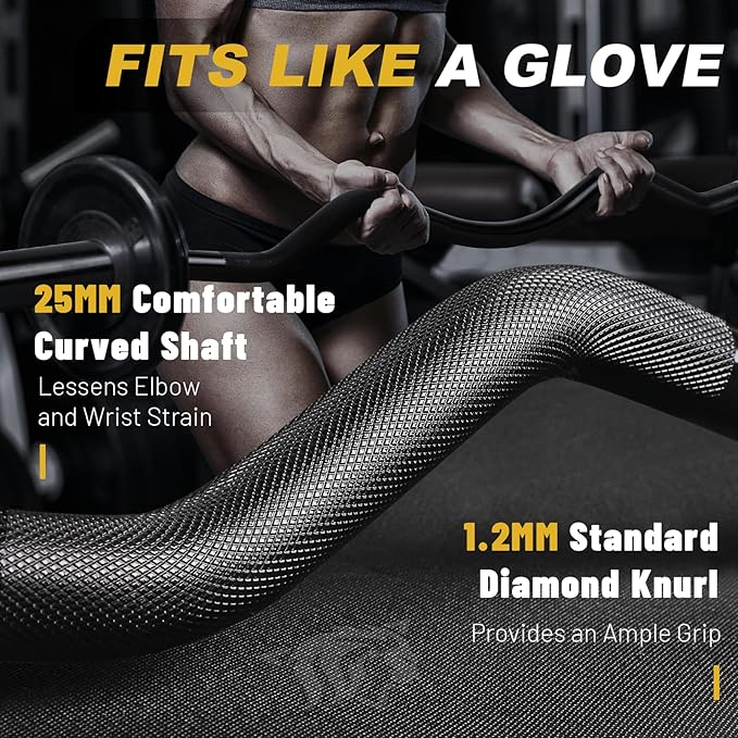 - Comfortable Curved Shaft: The 25mm bent shaft of our curl bar is designed for maximum comfort and effectiveness. The thoughtfully crafted cambered angles place your hands in a natural position, significantly reducing strain on your elbows and wrists. Experience a targeted and challenging workout that activates your biceps and triceps the way they’re supposed to.