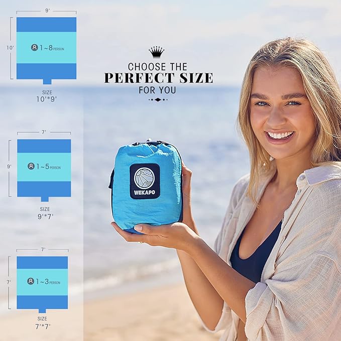 WEKAPO Beach Blanket Sandproof Waterproof, Extra Large Beach Mat, Oversized & Compact Sand Free Mat Quick Drying, Lightweight & Durable with 6 Stakes & 4 Corner Pockets