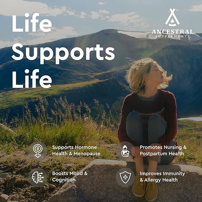 Ancestral Supplements Grass Fed Placenta Supplement with Liver, Contains Postpartum Vitamins for Women Breastfeeding, Promotes Menopause Relief, Stem Cells Support Skin Elasticity, 180 Capsules