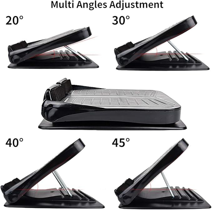 - 【Adjustable Slant Board for Beginner】This slant board for squats is adjustable to 5 positions: 0°, 20°, 30°, 40°, and 45°, you can adjust the gear according to different needs. Which can helps make your muscles more sensitive during exercise, helping you stretch properly and reduce the chance of injury. You can start from the inclination of the low angle and gradually stand on the slant board, the soles of the feet tightly contact the inclined surface.