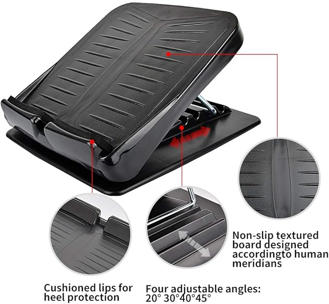- 【 Slant Board Anti-Slip Design】Our slant board calf stretch board features a textured surface and a plastic/rubber lip for heels to prevent your feet from sliding off the incline board. With 4 Non-slip mat along the bottom of the calf stretcher board ensures the stretcher does not slide when used on any surface. Level up your daily stretching with our calf stretch wedge.