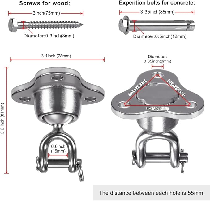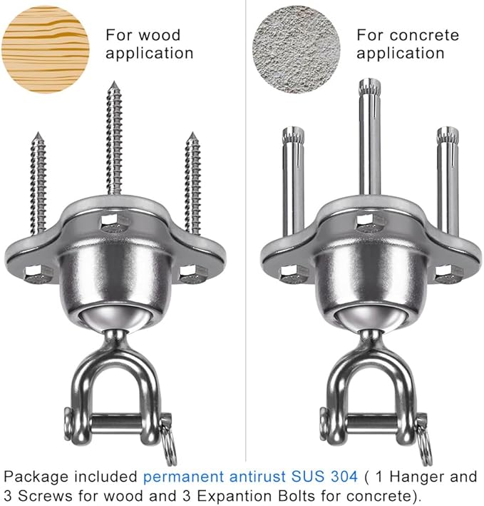 - 【Easy Installation】Comes with 3 wood screws and 3 expansion iron bolts. Using screws/bolts through holes to fix it on the wooden beam/concrete. Then you could enjoy the swing. (Please see the description section for the detailed installation method)