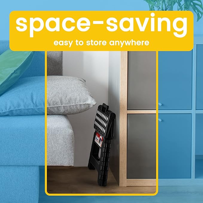 ACSTEP Folding Step Stool 9'' Tall Kids Step Stool Holds Up to 300 lb Plastic Foldable Step Stools for Kids Non-Slip Surface with Carry Handle Collapsible Stool for Home, Outdoor and Indoor(Black)