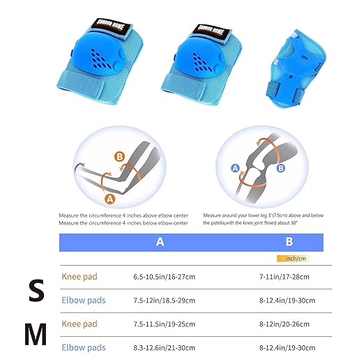 - 🌸【Recommended Age for Kids 】SOHOUR HOME Kids Knee Pads and Elbow Pads 6 pack contains: 2 pcs Knee pads /2 pcs Elbow Pads / 2 pcs Wrist Guards With Portable Breathable Canvas Mesh Bag. Size Suggest: S: for 3-7 Years old, M: for 6-15 Years old.