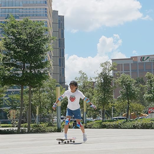 - 🌸【Adjustable Elastic Straps】Kids Skateboarding Pads and Wrist Guards Adopt Upgrade Adjustable Elastic Straps and Velcro, Multiple Adjustable Elastic Straps and Buckle Closures Closures to Securely Fit Your knee and Elbow for secure fit. Ensure Free Movement During Exercise.