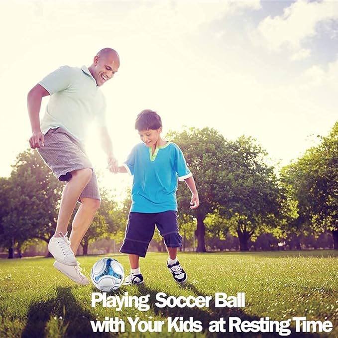 - ⚽WATERPROOF & DURABLE: Special Thermal-Bonding technology make the 5 soccer balls more durable and no thread broken , reduce the water seepage inside the body. Upgrade version of the bladder keep good shape and not easy to burst, provide excellent strength and stable moving trail.