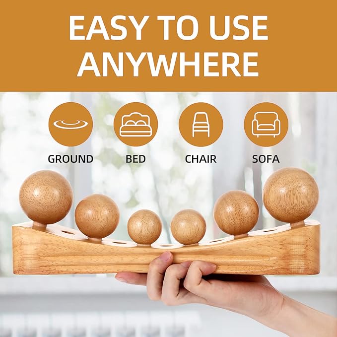 - We use natural high-quality rubber wood, which is moisture-proof, does not change color, durable, smooth and burr-free, non-toxic to the human body, portable, light, ergonomic, and easy to clean.The stable structure gives you the freedom to massage any part of your back or hip that has muscle tension, soreness, and pain.