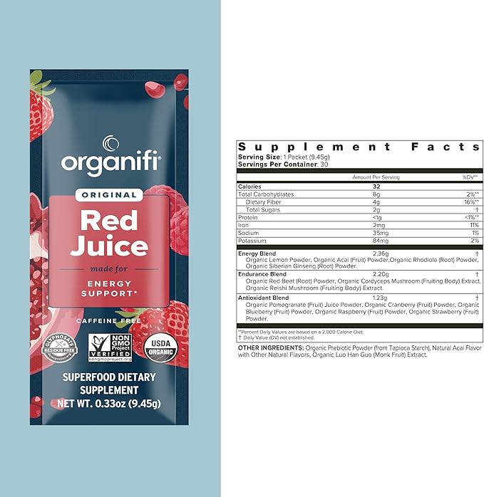 - Digestive Health and Immune Boost: Red Juice can do more than increase your energy and enhance your focus. It contains prebiotic powder to encourage proper bowel movements, Chaga Mushroom to stimulate the immune system and support the digestive tract, and lemon to boost immunity and digestion. These ingredients and more can work together to improve your overall health.