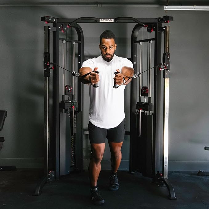 Titan Fitness Functional Trainer Cable Crossover Machine, 200 LB Double Weight Stack, 2:1 Cable Pull Station, Home Gym Workout Weight Training Machine with Attachments