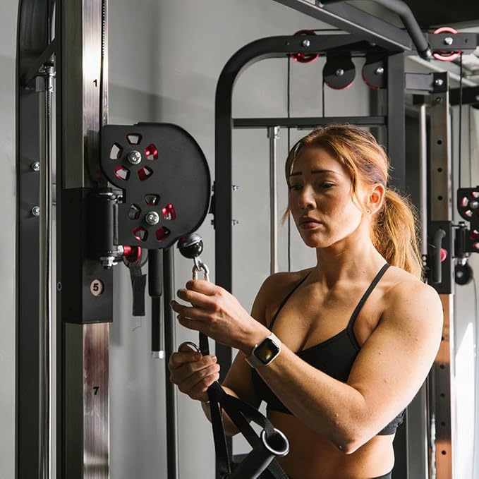 - SELECTORIZED FUNCTIONAL TRAINER: This all-in-one functional trainer has dual 200 LB weight stacks in 10 LB increments for quick, progressive weight changes. With a 2:1 ratio and commercial-grade cables, it delivers smooth, controlled motion for increased muscle activation and faster results.