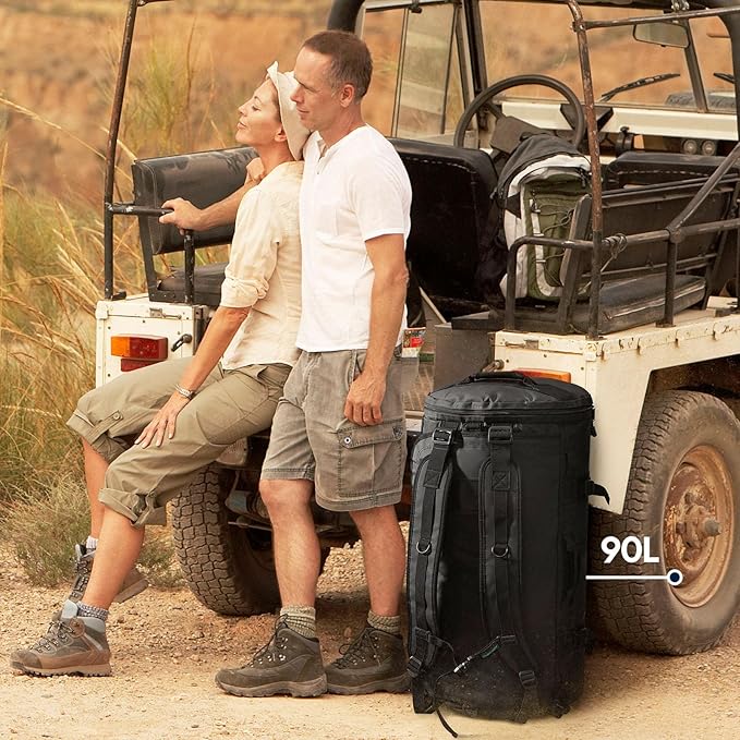 Haimont Large Duffle Backpack Bag for Men, Long Travel Duffel with Backpack Straps, Heavy Duty Back Packs with Shoes Compartment, Water-resistant, 90L, Black