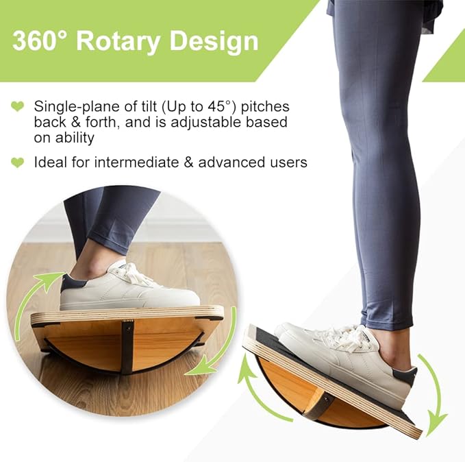 - ADVANCED CORE TRAINING: The cross-shaped base of this balance board enables tilting in all directions and 360° rotation, providing more challenging exercises than standard square boards. Ideal for push-ups, squats, lunges, planks, mountain climbers, bridges, and crunches to develop core strength, stabilize muscles, and improve balance and coordination.