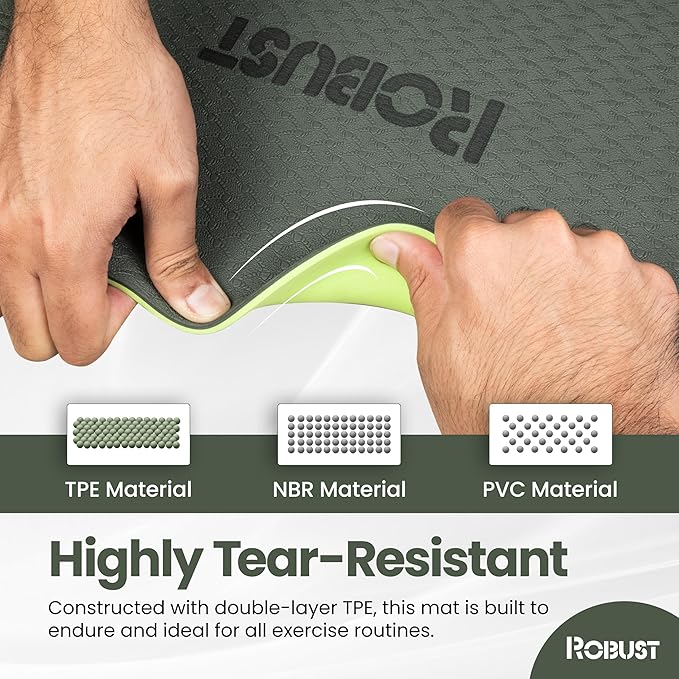 Robust Non-Slip Yoga Mat with Strap, 1/4" Thick TPE Eco-Friendly Workout Mat for Yoga with Position Lines and Texture Surface, Gym Mat for Women, Men, Pilates and Exercises Anti-Tear Sweat-Proof Exercise Mat
