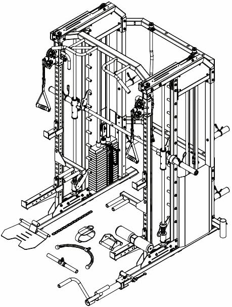 - SAFE TO USE AND BIG SIZE – You will love this big size Smith Machine workout equipment for home workouts, your all-time workout buddy for life! The universal gym equipment features Safe and Super Sturdy Machine for 24/7 Workout by Different Exercisers with assembled Dimensions:( Main Rack Only) Width 66”x Length 77”x Height 86” and Gross Weight: 980 Lbs. (21 Packages), Max Weight Capacity (Including User Weight) 600 lb.