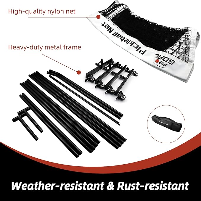 - 【Great Value】:Comes with 1 x Nylon net, 1 x Heavy-duty metal frame, 1 x Carrying bag and 3 x Pickle balls. Get your kids outside and moving! ProGoal Pickleball Net System is ideal for adults' & kids' casual play and sports training!